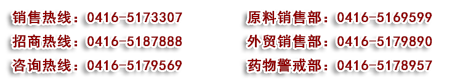 ●招商熱線:0416-5187888 ●藥物警戒部:0416-5178957 ●咨詢(xún)熱線:0416-5179569
